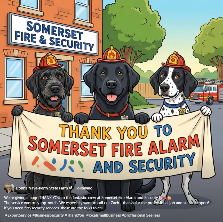 “We’re giving a huge THANK YOU to the fantastic crew at Somerset Fire Alarm and Security!